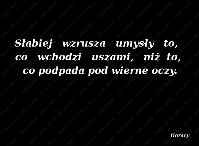 Słabiej wzrusza umysły to, co wchodzi uszami, niż to, co podpada pod wierne oczy.