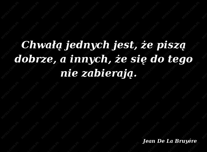 Chwałą jednych jest, że piszą dobrze, a innych, że się do tego nie zabierają.