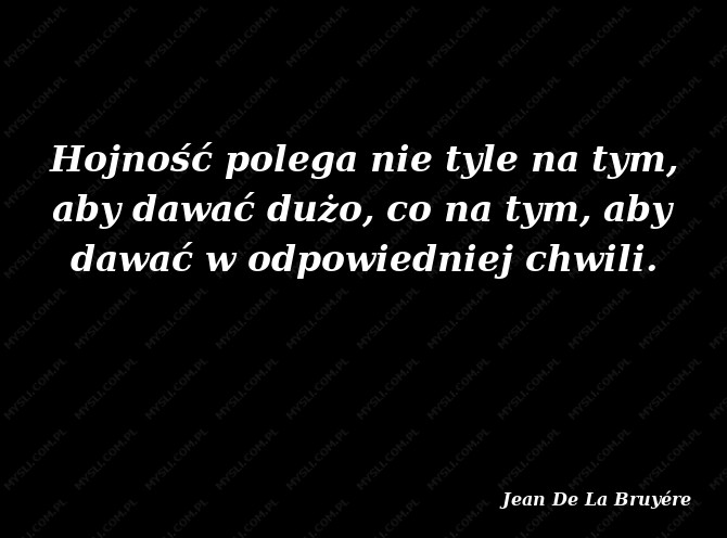 Hojność polega nie tyle na tym, aby dawać dużo, co na tym, aby dawać w odpowiedniej chwili.