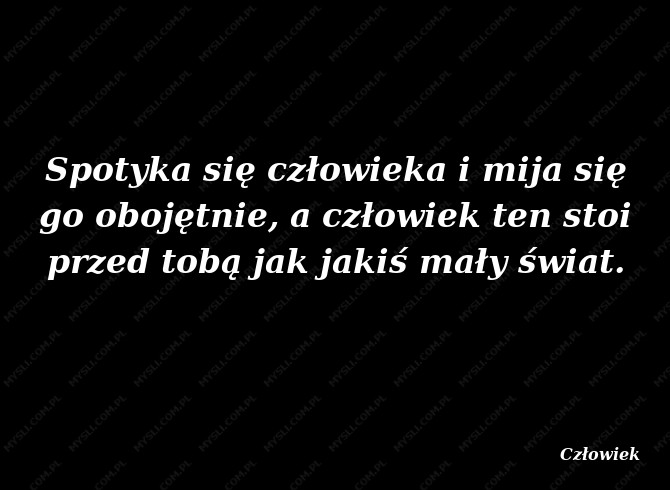 Spotyka się człowieka i mija się go obojętnie, a człowiek ten stoi przed tobą jak jakiś mały świat.