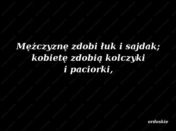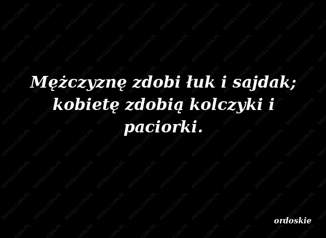 Mężczyznę zdobi łuk i sajdak; kobietę zdobią kolczyki i paciorki,