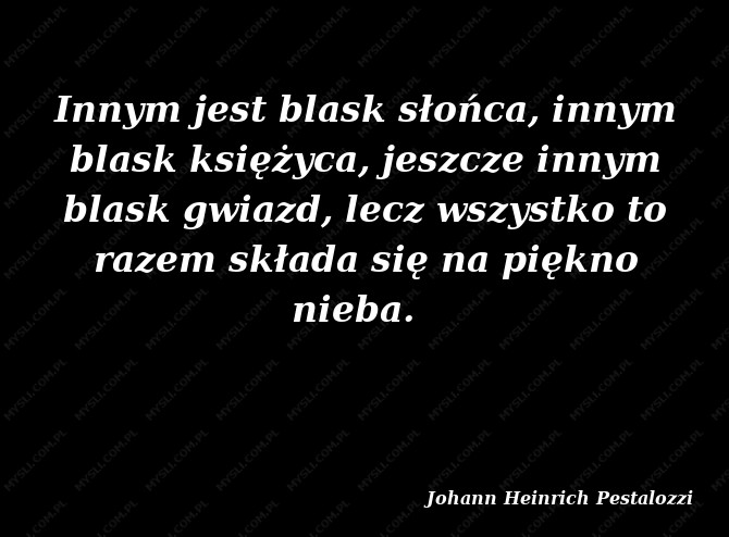 Innym jest blask słońca, innym blask księżyca, jeszcze innym blask gwiazd, lecz wszystko to razem składa się na piękno nieba.