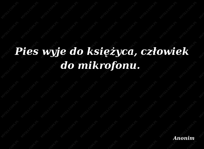 Pies wyje do księżyca, człowiek do mikrofonu.