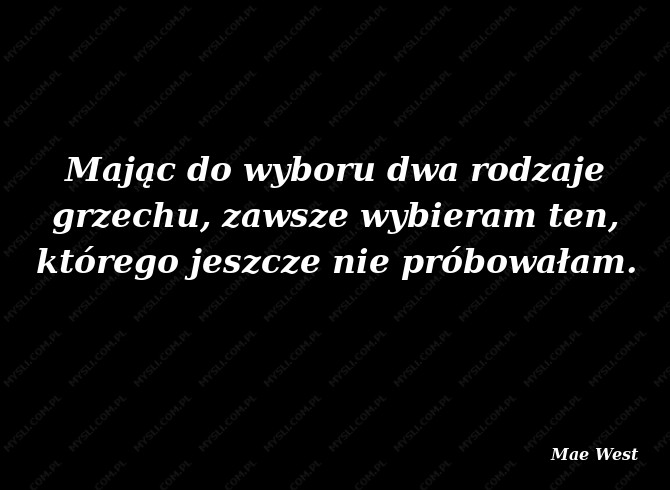 Mając do wyboru dwa rodzaje grzechu, zawsze wybieram ten, którego jeszcze nie próbowałam.