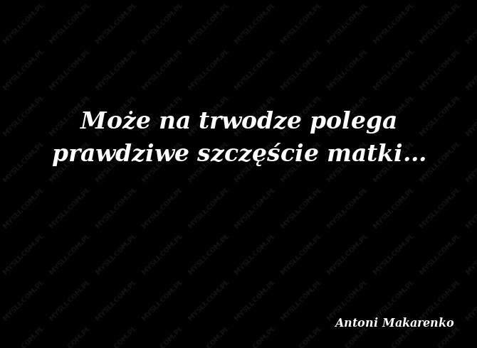 Może na trwodze polega prawdziwe szczęście matki...