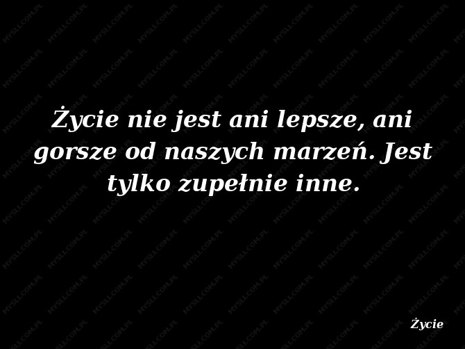 Życie nie jest ani lepsze, ani gorsze od naszych marzeń. Jest tylko zupełnie inne.