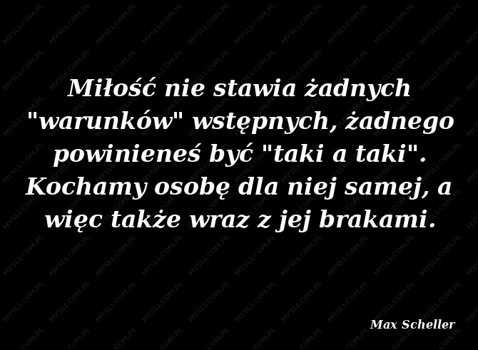 Miłość nie stawia żadnych "warunków" wstępnych, żadnego powinieneś być "taki a taki". Kochamy osobę dla niej samej, a więc także wraz z jej brakami.