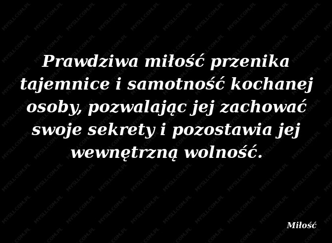 Prawdziwa miłość przenika tajemnice i samotność kochanej osoby, pozwalając jej zachować swoje sekrety i pozostawia jej wewnętrzną wolność.