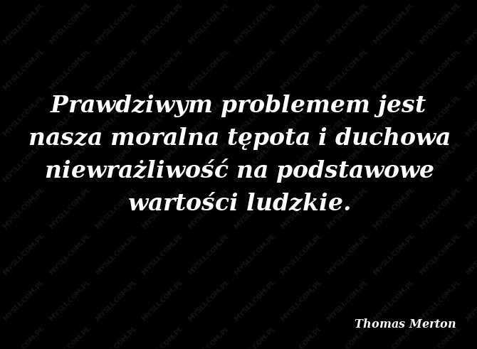 Prawdziwym problemem jest nasza moralna tępota i duchowa niewrażliwość na podstawowe wartości ludzkie.