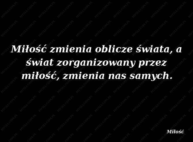 Miłość zmienia oblicze świata, a świat zorganizowany przez miłość, zmienia nas samych.