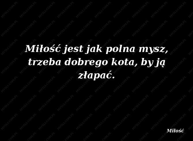 Miłość jest jak polna mysz, trzeba dobrego kota, by ją złapać.