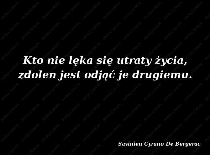 Kto nie lęka się utraty życia, zdolen jest odjąć je drugiemu.