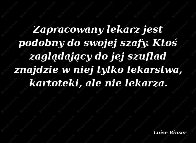 Zapracowany lekarz jest podobny do swojej szafy. Ktoś zaglądający do jej szuflad znajdzie w niej tylko lekarstwa, kartoteki, ale nie lekarza.