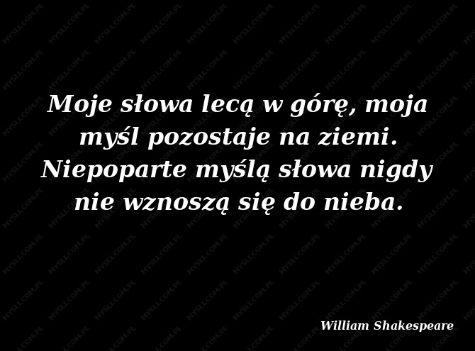 Moje słowa lecą w górę, moja myśl pozostaje na ziemi. Niepoparte myślą słowa nigdy nie wznoszą się do nieba.