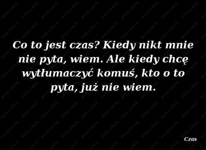 Co to jest czas? Kiedy nikt mnie nie pyta, wiem. Ale kiedy chcę wytłumaczyć komuś, kto o to pyta, już nie wiem.