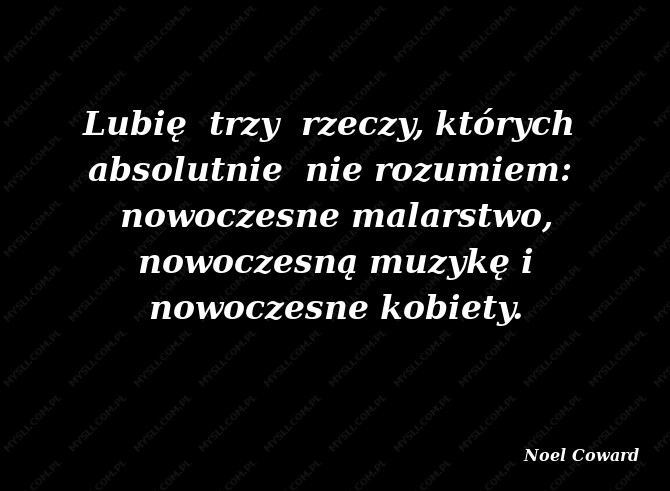 Lubię trzy rzeczy, których absolutnie nie rozumiem: nowoczesne malarstwo, nowoczesną muzykę i nowoczesne kobiety.