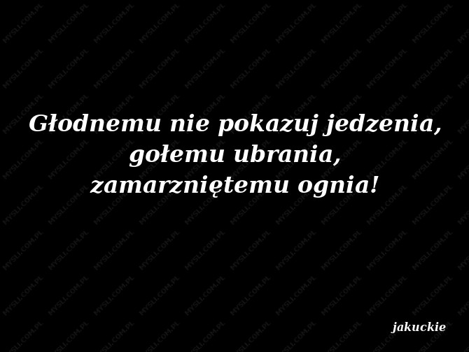 Głodnemu nie pokazuj jedzenia, gołemu ubrania, zamarzniętemu ognia!