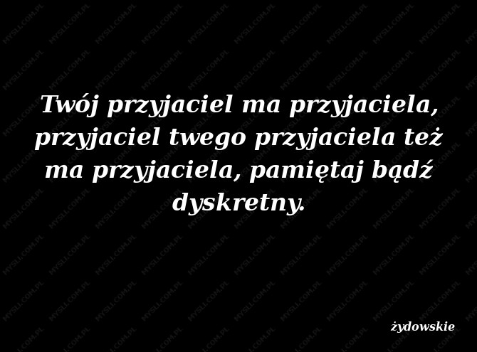 Twój przyjaciel ma przyjaciela, przyjaciel twego przyjaciela też ma przyjaciela, pamiętaj bądź dyskretny.
