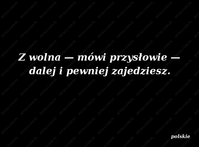 Z wolna — mówi przysłowie — dalej i pewniej zajedziesz.