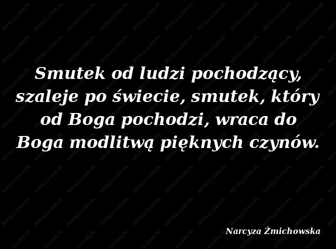 Smutek od ludzi pochodzący, szaleje po świecie, smutek, który od Boga pochodzi, wraca do Boga modlitwą pięknych czynów.