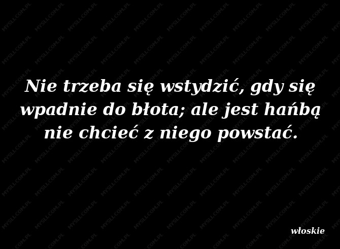 Nie trzeba się wstydzić, gdy się wpadnie do błota; ale jest hańbą nie chcieć z niego powstać.