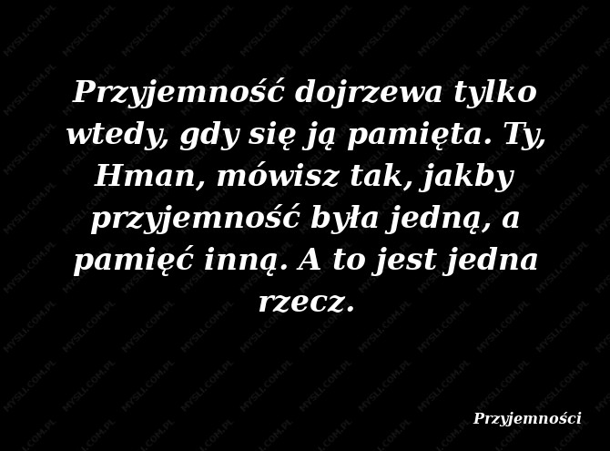 Przyjemność dojrzewa tylko wtedy, gdy się ją pamięta. Ty, Hman, mówisz tak, jakby przyjemność była jedną, a pamięć inną. A to jest jedna rzecz.