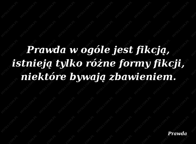 Prawda w ogóle jest fikcją, istnieją tylko różne formy fikcji, niektóre bywają zbawieniem.
