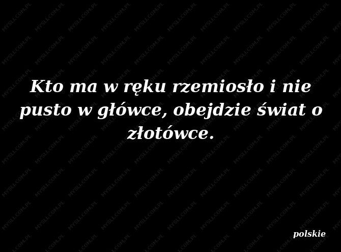 Kto ma w ręku rzemiosło i nie pusto w główce, obejdzie świat o złotówce.