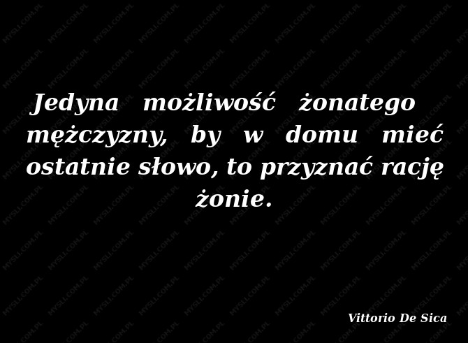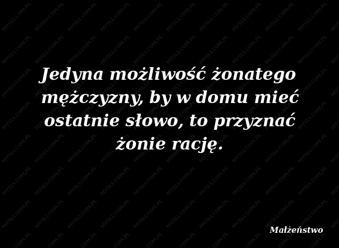Jedyna możliwość żonatego mężczyzny, by w domu mieć ostatnie słowo, to przyznać rację żonie.