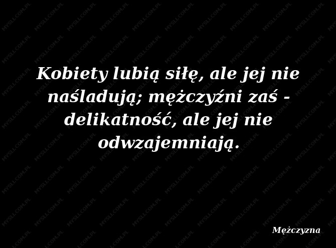 Kobiety lubią siłę, ale jej nie naśladują; mężczyźni zaś - delikatność, ale jej nie odwzajemniają.