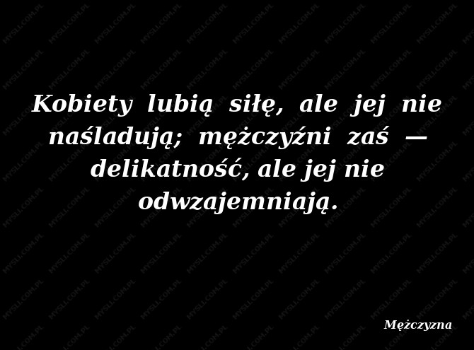 Kobiety lubią siłę, ale jej nie naśladują; mężczyźni zaś — delikatność, ale jej nie odwzajemniają.