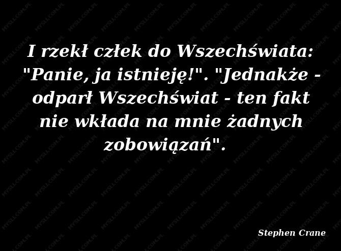 I rzekł człek do Wszechświata: "Panie, ja istnieję!". "Jednakże - odparł Wszechświat - ten fakt nie wkłada na mnie żadnych zobowiązań".