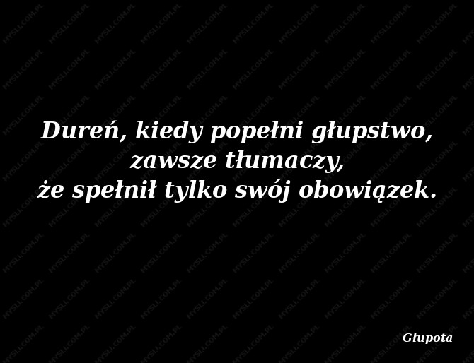 Dureń, kiedy popełni głupstwo, zawsze tłumaczy, że spełnił tylko swój obowiązek.