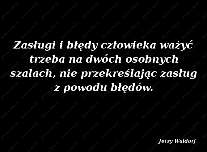 Zasługi i błędy człowieka ważyć trzeba na dwóch osobnych szalach, nie przekreślając zasług z powodu błędów.