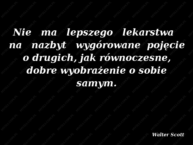 Nie ma lepszego lekarstwa na nazbyt wygórowane pojęcie o drugich, jak równoczesne, dobre wyobrażenie o sobie samym.