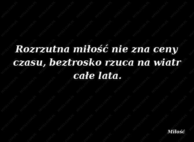 Rozrzutna miłość nie zna ceny czasu, beztrosko rzuca na wiatr całe lata.