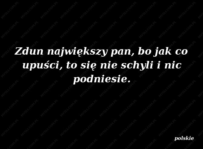 Zdun największy pan, bo jak co upuści, to się nie schyli i nic podniesie.