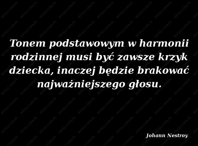 Tonem podstawowym w harmonii rodzinnej musi być zawsze krzyk dziecka, inaczej będzie brakować najważniejszego głosu.