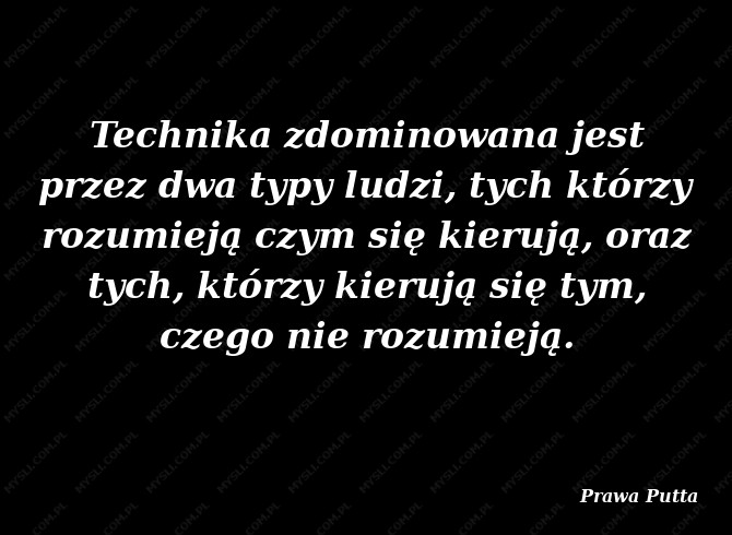 Technika zdominowana jest przez dwa typy ludzi, tych którzy rozumieją czym się kierują, oraz tych, którzy kierują się tym, czego nie rozumieją.
