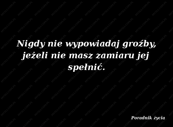 Nigdy nie wypowiadaj groźby, jeżeli nie masz zamiaru jej spełnić.