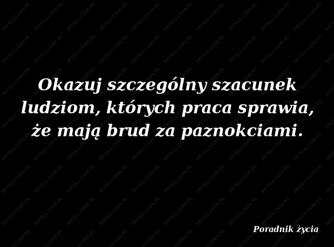 Okazuj szczególny szacunek ludziom, których praca sprawia, że mają brud za paznokciami.