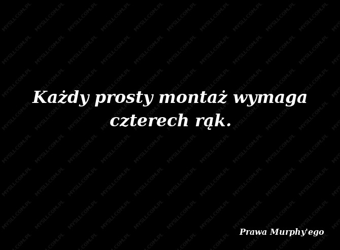 Jeżeli zgłosisz jakiś patent zawsze okaże się, że ktoś już złożył podobny tydzień temu - stałość dat dostawy jest odwrotnie proporcjonalna do napiętości planu - silnik zawsze obraca się w złym kierunku - defekt przechodzi niezauważony przez wszystkie kontrole i ujawnia się dopiero w praktyce - po usunięciu ostatniej z 16 śrubek przytrzymujących pokrywę, okaże się, że usunąłeś niewłaściwą pokrywę - po przykręceniu ostatniej z 16 śrubek przytrzymujących pokrywę, okaże się, że zapomniałeś o uszczelce.